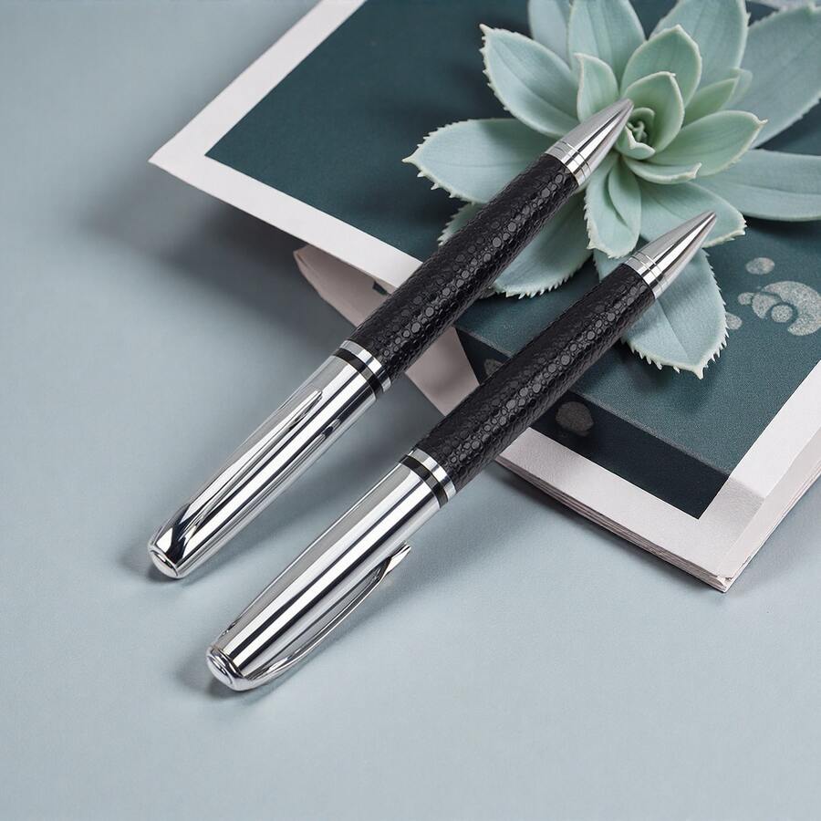 1 caneta esferográfica de metal giratória luxuosa (embalagem de Pu), tinta sem manchas/adequada para tarefas escolares, reuniões de negócios e uso ao ar livre/perfeita para estudantes/empresários e para presentear - design moderno