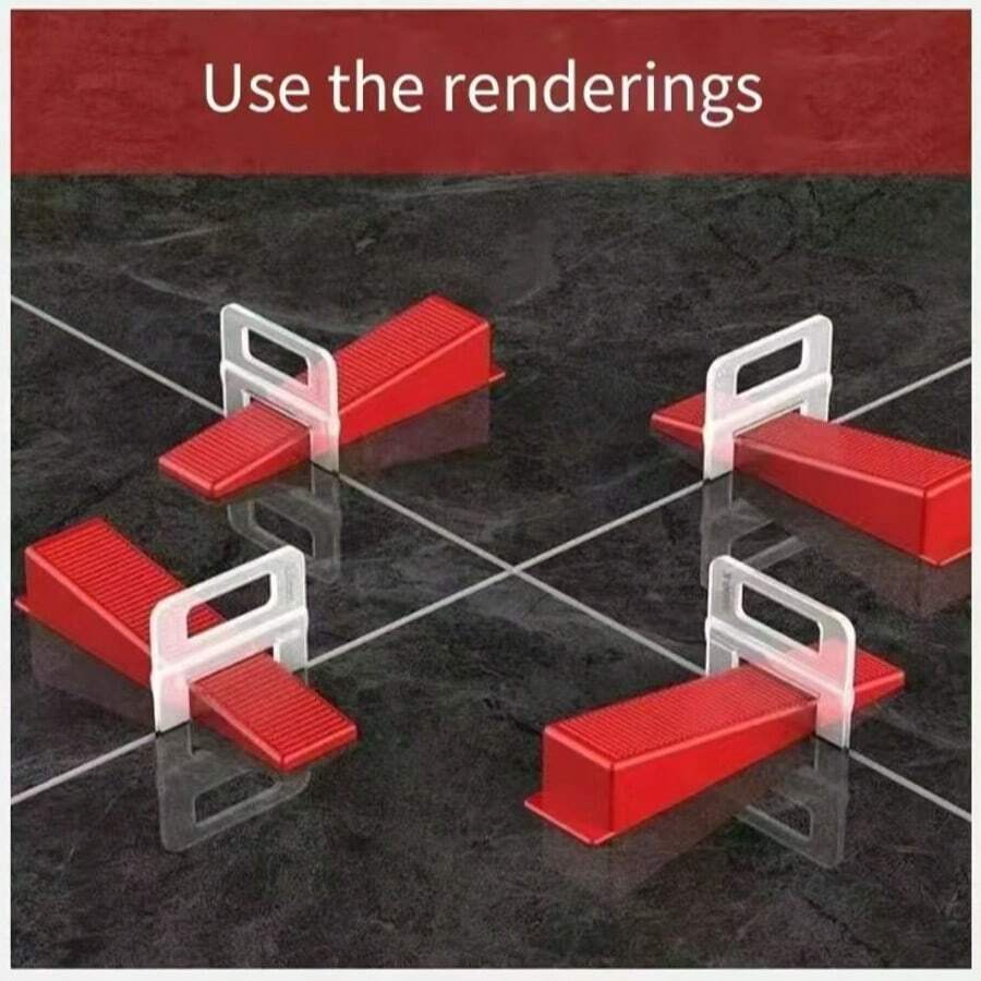 Sistema de nivelamento de azulejos com 100 peças/pacote, base branca, espaçadores de 1,5 cm, 2 cm e 2,5 cm, clipes de plástico vermelho de 7,5 cm, feitos de novo material PP, não danificam os azulejos.