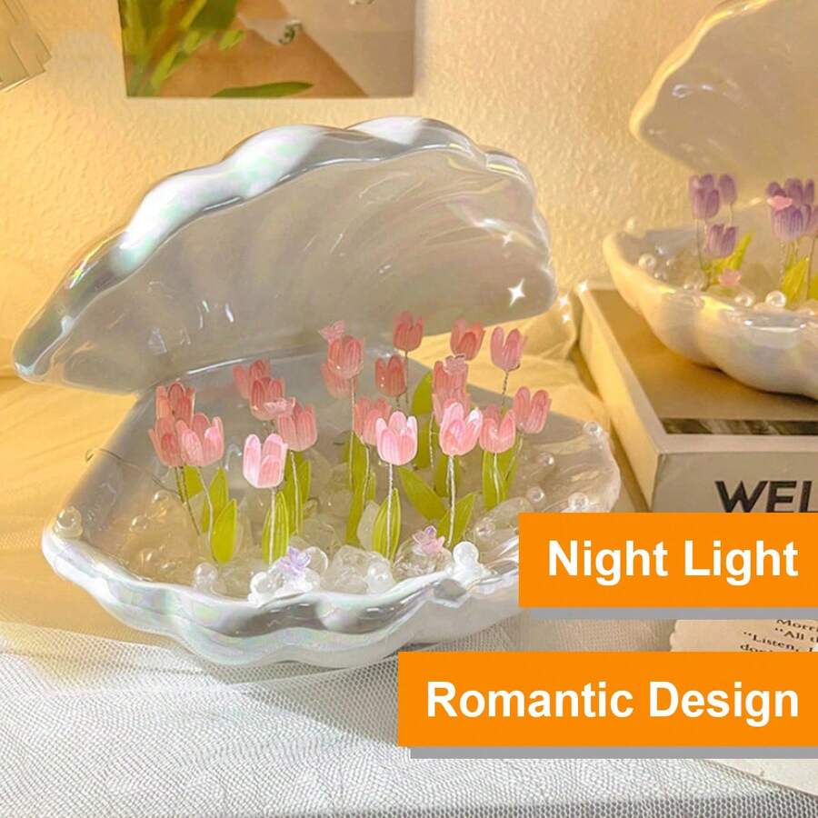 1 peça de abajur em formato de tulipa, luminária floral de plástico criativa feita à mão, abajur decorativo de mesa de cabeceira, enfeite de mesa para casa, iluminação romântica para ambiente de quarto, abajur compacto para sala de estar, luminária de aniversário em formato de tulipa. Ideal como presente de aniversário para meninas, mães ou namoradas, também adequado para o Dia dos Namorados. Perfeito para presentear, decorar a casa, compor o quarto, dar estilo à sala de estar, decorar festas e exibir em mesas.