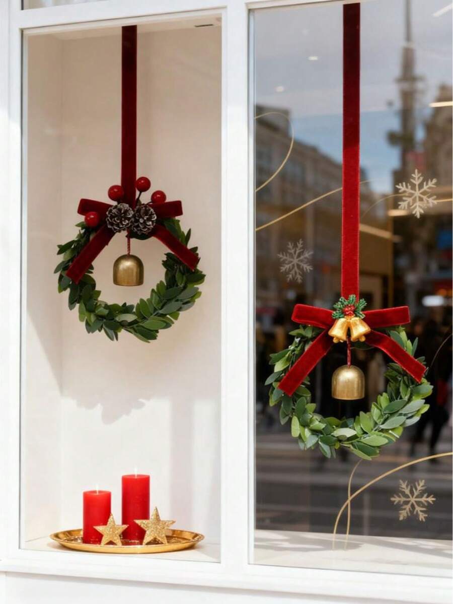 Conjunto de 1 enfeite de Natal com sinos dourados e pinhas, com guirlanda de laço vermelho, resistente a quebras, ideal para pendurar na árvore de Natal, porta ou janela. Perfeito para festas de inverno. Enfeite festivo para pendurar, decoração de Ano Novo, decoração para lareira, enfeite para presente de Natal de 2025, decoração de varanda, decoração externa para as festas, guirlanda para lareira, enfeite para meia de Natal, decoração de escada de Natal.