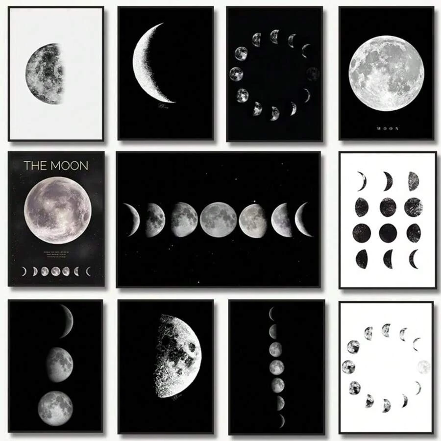 1 peça/3 peças pôsteres de arte de parede moldura opcional arte moderna em preto e branco pôster de fase da lua estética impressão em tela murais de parede adequados para salas de estar, bares, cafés, decoração de casa