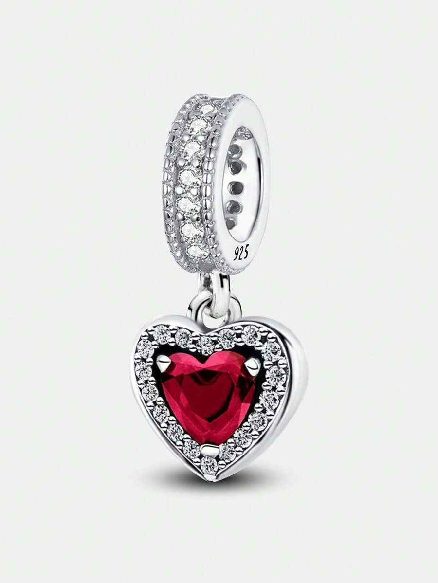 Pingente de prata de lei 925 brilhante em formato de coração com contas (1 peça). Ideal para confecção de pulseiras e braceletes, além de ser perfeito para uso diário. Perfeito para meninas e mulheres, e também pode ser usado como material escolar.