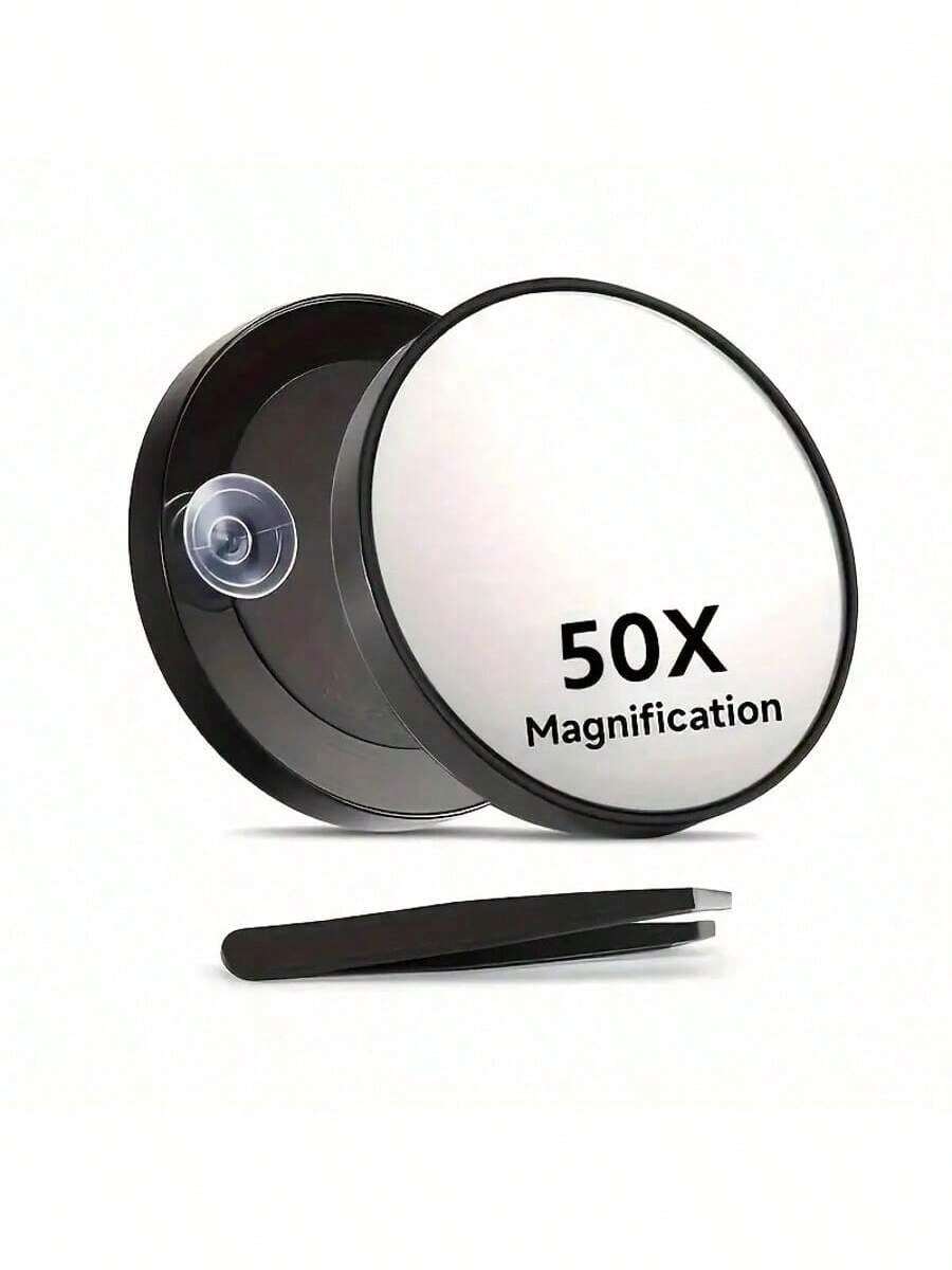 Espelho de aumento Cosmeria 50X com ventosas e pinça (1 unidade), espelho cosmético 40X com ampliação potente para maquiagem precisa e remoção de pelos da sobrancelha. Ideal para maquiagem, decoração de quarto, penteadeira, viagens, acessórios de maquiagem, espelho de mão, mini espelho, espelho compacto, espelho pequeno, presente de Natal, ferramentas de maquiagem, itens baratos, presentes para mulheres.