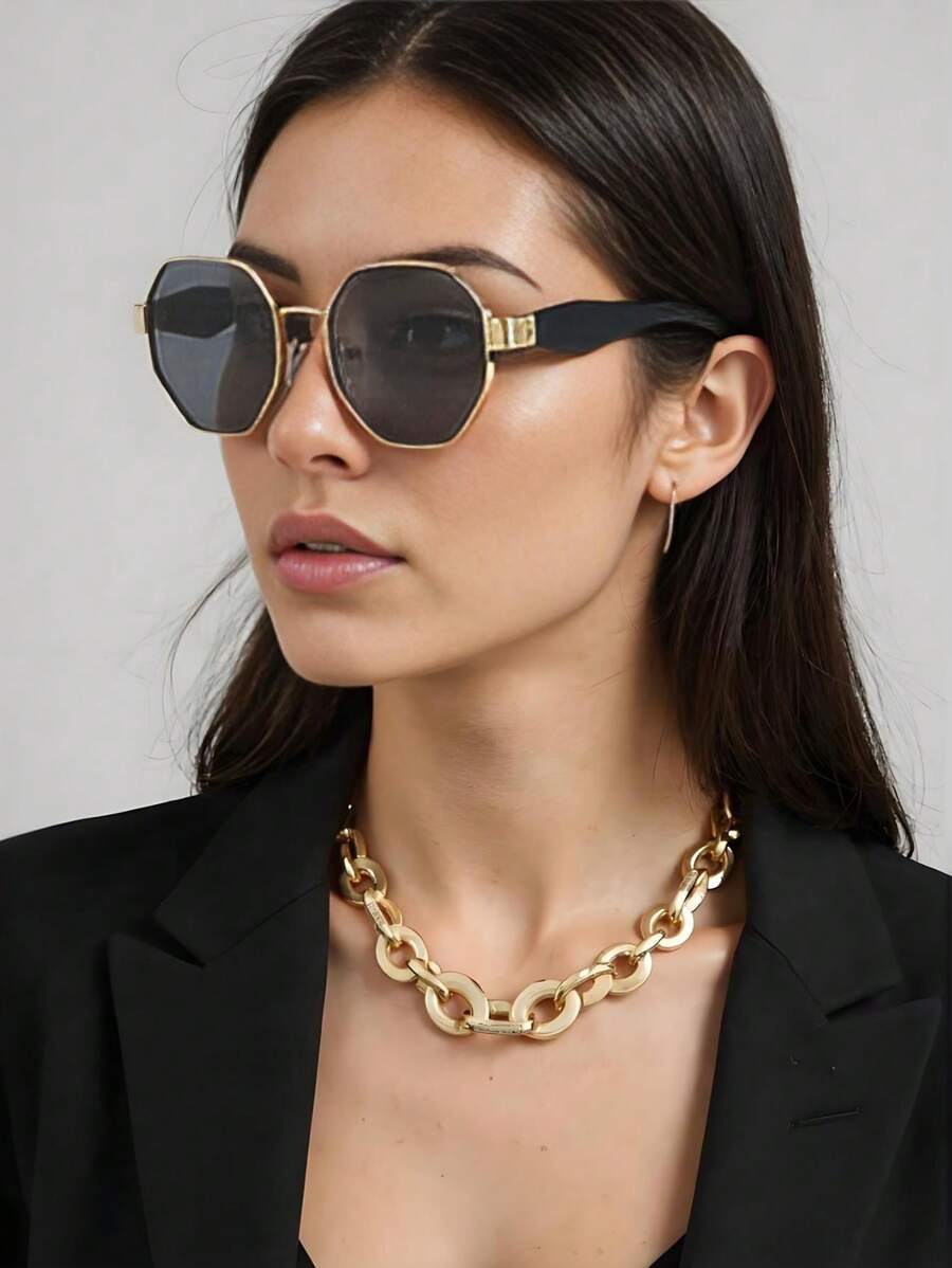 Óculos personalizados de alta qualidade, novos, 2025, armação quadrada moderna, óculos de metal poligonal, adequados para roupas da moda, presentes de Natal, presentes de aniversário para férias de verão na praia, atividades ao ar livre, viagens