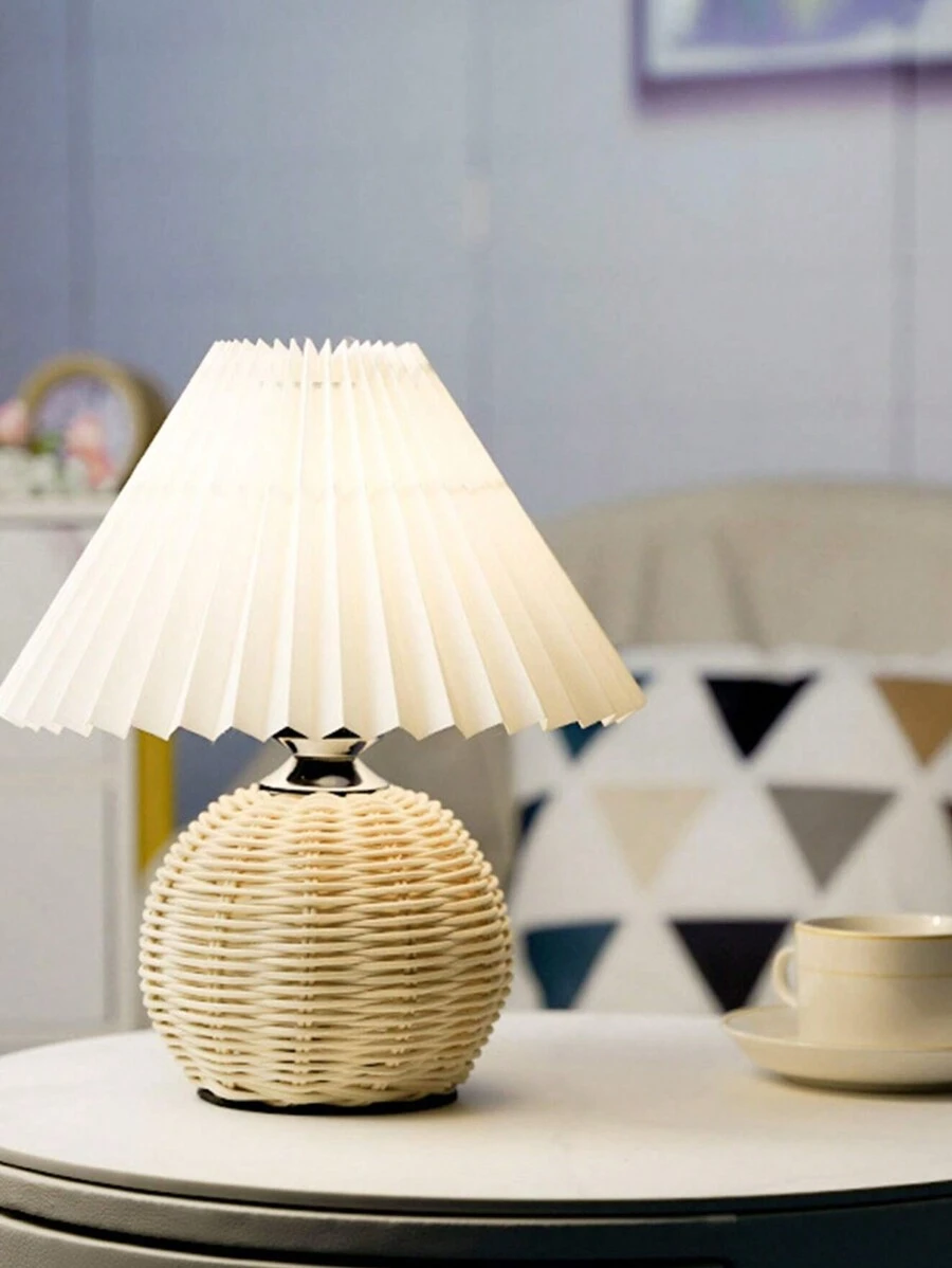 1 peça Lâmpada de Mesa LED de Estilo Nórdico Economizadora de Energia, Alimentada por USB, Luz Suave Design em forma de Leque Plissado, Base de Vime, Adequado para Decoração de Quarto Sala de Estar Escritório em Casa