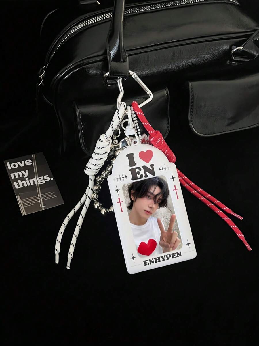 1 peça porta-cartões fotográficos retrô vermelho e branco, capa para cartões fotográficos, porta-cartões fotográficos "I Love En-Hyphen", porta-chaves, expositor de cartões fotográficos de ídolos Kpop, material PU, compatível com cartões fotográficos de ídolos de 3 a 3,5 polegadas, porta-cartões fotográficos de ídolos em formato de coração, pingente para bolsa