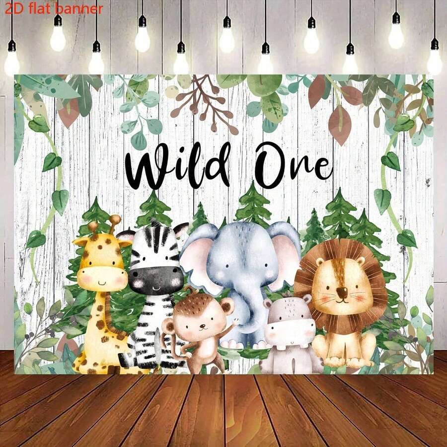 Banner plano 2D 1 peça Wild One Birthday Background Caça Selva Animais Homens e Mulheres Decoração de festa de primeiro aniversário Woodland Wild One Birthday Photography Backdrop Bolo Mesa Banner (7x5 pés)