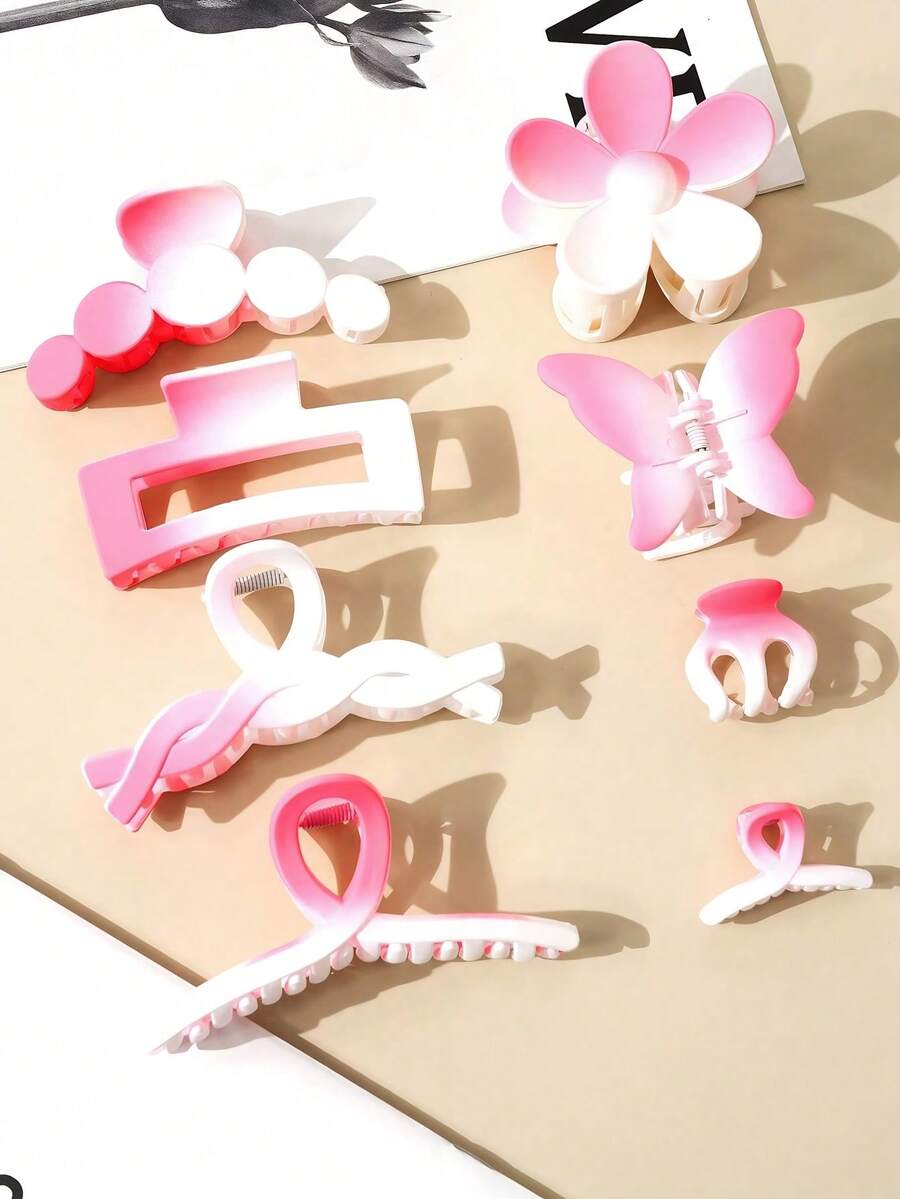 Conjunto de 8 presilhas/grampos de cabelo casuais e charmosos em plástico ABS com efeito degradê, perfeitos para mulheres. Acessórios de cabelo modernos e elegantes para todas as estações, ideais para o Dia dos Namorados e outras ocasiões especiais.