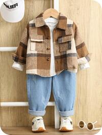 Playful PalsSHEIN Playful Pals Conjunto de 2 peças para bebê menino: camisa de manga comprida com botões e bolsos, e calça com elástico na cintura. Estilo casual e elegante, ideal para uso casual, escola, férias, esportes e para ficar em casa. Primavera/Verão, tamanhos de 6 meses a 3 anos. Roupa infantil, roupa para bebês, camisa para bebê, blusa para bebê, roupa neutra para bebê menino, conjunto de veludo cotelê para bebê menino, conjunto bege para bebê menino, roupa para bebê menino para outono/inverno. #2 Mais Vendido