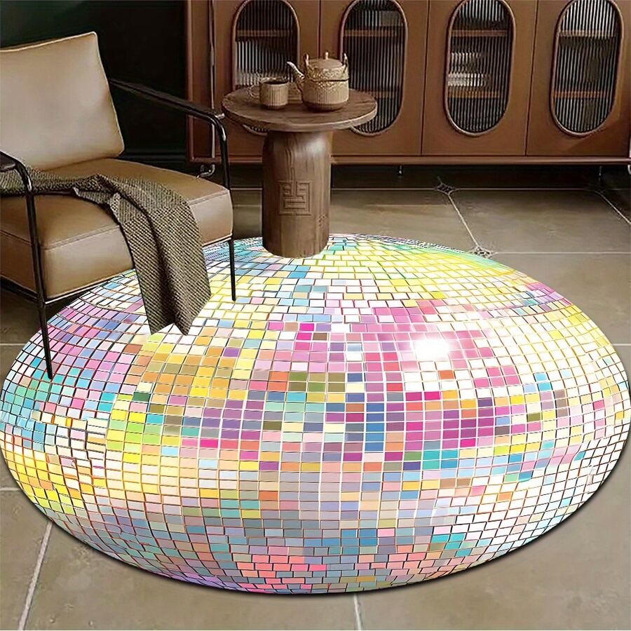Tapete redondo com padrão de bola de discoteca - antiderrapante, durável e lavável para sala de estar, quarto, escritório, eventos ao ar livre - carpete para áreas grandes da HKStorage