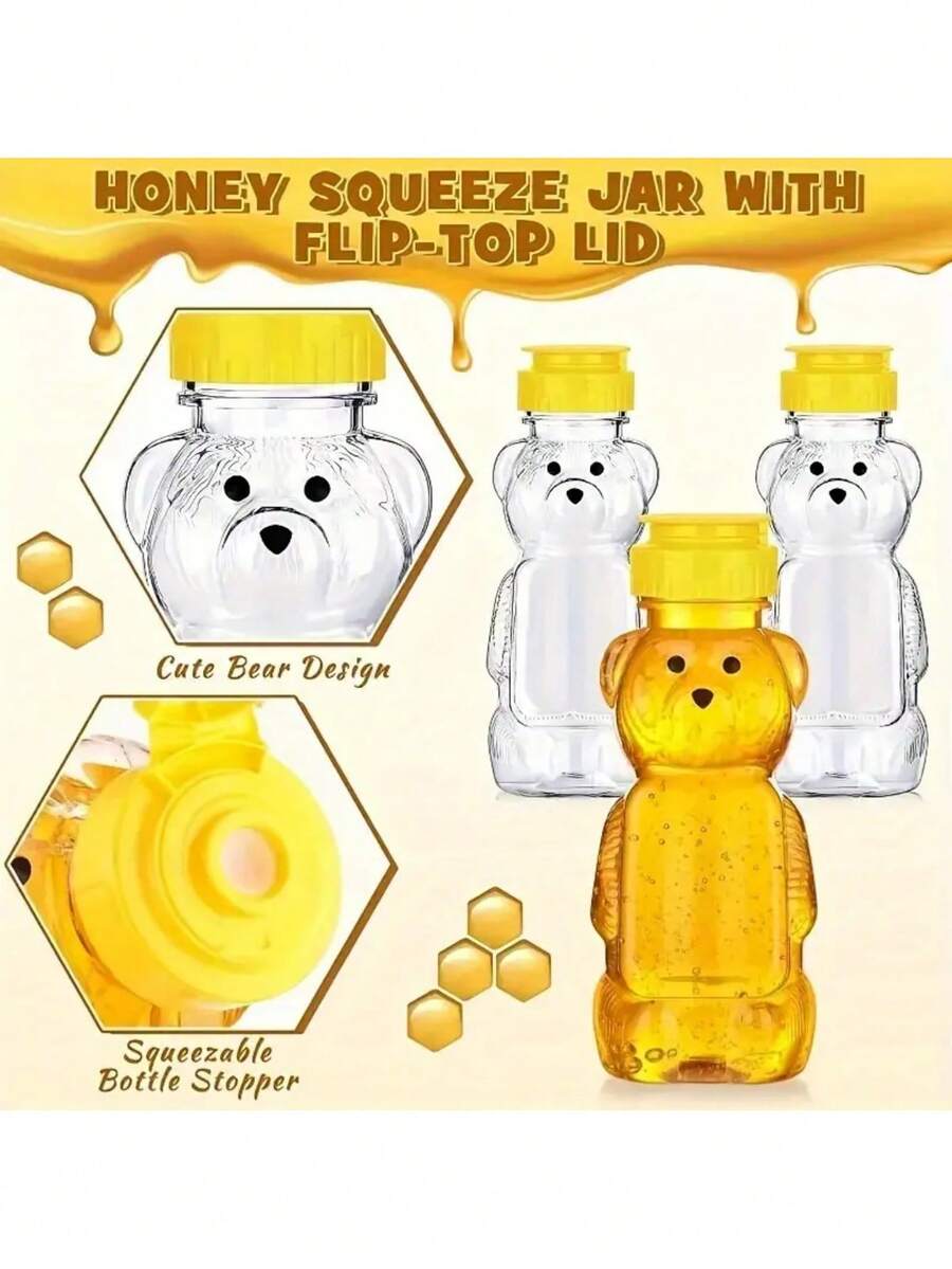Garrafa Honey Bear com Lata de Concha Amarela - Perfeita para Armazenamento e Entrega de Sucos! Restaurante/Café/Casa, Recipiente para Presente de Festa | Design Interessante | Garrafa com Tampa de Segurança, Garrafa Honey Bear, Presentear
