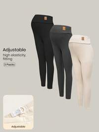 ModmamaModmama Pacote com três leggings para maternidade, outono e inverno, para mulheres grávidas, com letras bordadas, forro térmico, casual, versátil, leggings quentes para maternidade, leggings para gravidez, leggings para maternidade, leggings para gravidez, leggings para maternidade de inverno, leggings com forro térmico