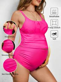 MomanceMomance Chegada da nova coleção de moda praia feminina 2026. Ideal para escola, férias, encontros, chá da tarde, viagens, cruzeiros, praia, ilha, viagens de carro, todas as estações, festivais de música, férias boho, férias boêmias, outono tranquilo, estilo boho ocidental. Conjunto de biquíni tankini elegante para gestantes com listras, patchwork e babados. Perfeito para férias na praia. Conjunto de biquíni tankini, maiô discreto de uma peça, maiô com saia, conjunto de duas peças para gestantes.