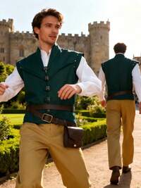 1 peça de capa com capuz, guerreiro medieval, escura, solta, comprimento médio, xale, verde, marrom, várias cores disponíveis, adequada para Halloween, performance de palco, fantasia de cosplay Conjunto de fantasia de Halloween/Natal com tema de anime para homens, inclui camisa, colete e calça, adequado para convenções de anime, Halloween, carnaval, bailes de máscaras, festas temáticas, apresentações de palco, fantasias de carnaval, traje de cosplay de príncipe, conjunto de fantasia adulto.