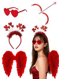 Conjunto de fantasia de Cupido para o Dia dos Namorados com 4 peças, incluindo asas vermelhas, arco e flecha, tiara e óculos. Ideal para brincadeiras de faz de conta, fotos, presentes de aniversário, decoração romântica, noites especiais, decoração de aniversário de casamento, artigos para festa de Dia dos Namorados e acessórios de fantasia. Unissex, também adequado para festas de solteiros (estilo enviado aleatoriamente). #1 Mais Vendido