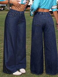 SHEIN PETITE CURVECalça jeans plus size reta com botões e bolsos, tecido com elasticidade média, comprimento longo. Casual, versátil, estilo streetwear, cor sólida, lavagem desgastada, adequada para o dia a dia, férias, formal, viagens, volta às aulas, Páscoa, mês do Orgulho LGBTQIA+ (EUA), todas as estações. #1 Mais Vendido
