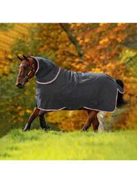 Manta para Cavalo de Inverno - 1 peça - Poliéster 1000D Preta - Manta Grossa para Cavalo, Resistente ao Vento e Respirável, com Proteção para o Pescoço.