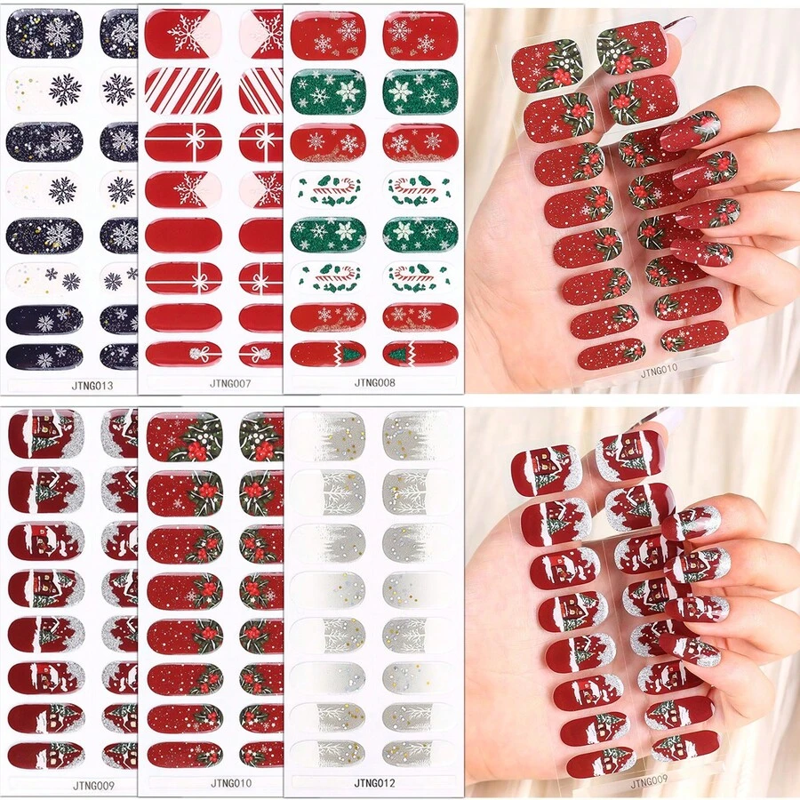 Tiras de unhas de gel semi curadas, adesivos retrô de Natal com padrões clássicos como flocos de neve e renas, funcionam com qualquer lâmpada de unha, adesivos de decoração de unhas com qualidade de salão, adesivos de decoração de unhas faça você mesmo para mulheres e meninas, salão de arte de unhas