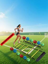 Escada de Treinamento de Futebol/Basquete de 6m/12 Degraus em ABS para Uso Interno/Externo, Adequada para Homens e Mulheres, Antiderrapante, Portátil, Desmontável, Distância Ajustável, Escada de Treinamento de Agilidade, Escada de Corda para Agilidade, Escada de Treinamento de Habilidades com os Pés, Escada de Treinamento de Velocidade; Placas de Obstáculos Duráveis e Antideformação; Ideal para Treinamento de Habilidades com os Pés no Futebol/Basquete, Treinamento Físico e Prática de Habilidades com os Pés no Futebol/Basquete; Acessórios de Futebol, Produtos Relacionados ao Futebol. Equipamento de treino de velocidade, agilidade e condicionamento físico para futebol/basquetebol unissex, para uso interno e externo; Escada de agilidade portátil, ajustável, desmontável, antiderrapante e com 6 degraus em PP (polipropileno) de 3 metros; Discos marcadores leves e indeformáveis; Ideal para treino de velocidade, força, coordenação, perda de peso e saltos. Também adequada para treino de movimentação de pés no futebol/basquetebol e condicionamento físico; Acessórios para futebol, jogos para meninos, artigos relacionados ao futebol, esportes.