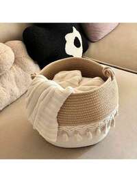 Cesto de armazenamento dobrável feito à mão com alça, 1 peça, cesto de roupa de grande capacidade, estilo boêmio, disponível nos tamanhos amarelo e branco, adequado para banheiro, sala de estar, quarto, para guardar roupas sujas, cobertores, brinquedos, festas de fim de ano, presentes de aniversário, decoração de casa, armazenamento, caixa de armazenamento