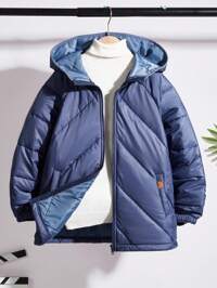 CozyroamerSHEIN Casaco esportivo casual para meninos adolescentes, 1 peça, faculdade, simples, com capuz, preto, acolchoado, com tecido brilhante, casaco de inverno, jaqueta acolchoada, adequada para roupas infantis, roupas para meninos, volta às aulas #8 Mais Vendido