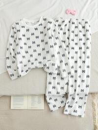 SHEIN Coelho Lulu fofo de desenho animado, padrão de pontos, tie-dye azul-celeste, conjunto de pijamas casual minimalista com gola redonda e manga curta para meninas pré-adolescentes, adequado para o verão, roupas de verão tranquilas, conforto fácil, crianças estilosas, roupas casuais, roupas infantis estampadas, volta às aulas #3 Mais Vendido