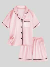 Genkimix KidsSHEIN Conjunto de pijama fofo com estampa de cereja "Chill Chill Summer" para meninas adolescentes, casual, minimalista, gola redonda, manga curta, shorts, adequado para o verão, conjunto de pijama cereja, conjunto de pijama feminino, conjunto de pijama feminino, conjunto de pijama de verão, conjunto de pijama feminino, conjunto de pijama feminino #4 Mais Vendido