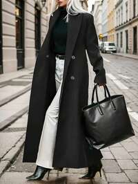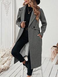 Pariaura Casaco feminino de malha minimalista de cor sólida, manga longa diária, elegante para o final do outono, botão duplo, bolso, manga regular, lapela, ajuste regular, marrom, liso, sobretudo feminino, atividades ao ar livre #1 Mais Vendido