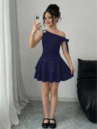 Firerie KidsFirerie Kids Firerie Kids Vestido infantil feminino casual com ombros assimétricos franzidos e detalhes de rosas metálicas, sem mangas. Elegante, perfeito para princesas, ocasiões formais, festas e aniversários de irmãs. Ideal para o dia a dia, festivais, reuniões familiares e eventos especiais. Ideal para primavera/verão, férias, com um estilo fofo, elegante, delicado, retrô e moderno. Combina com mães e filhas. #7 Mais Vendido